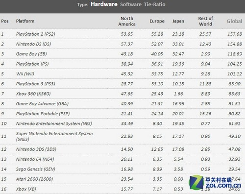游戏机历史总销量:索尼PlayStation家用机占据绝对主导地位